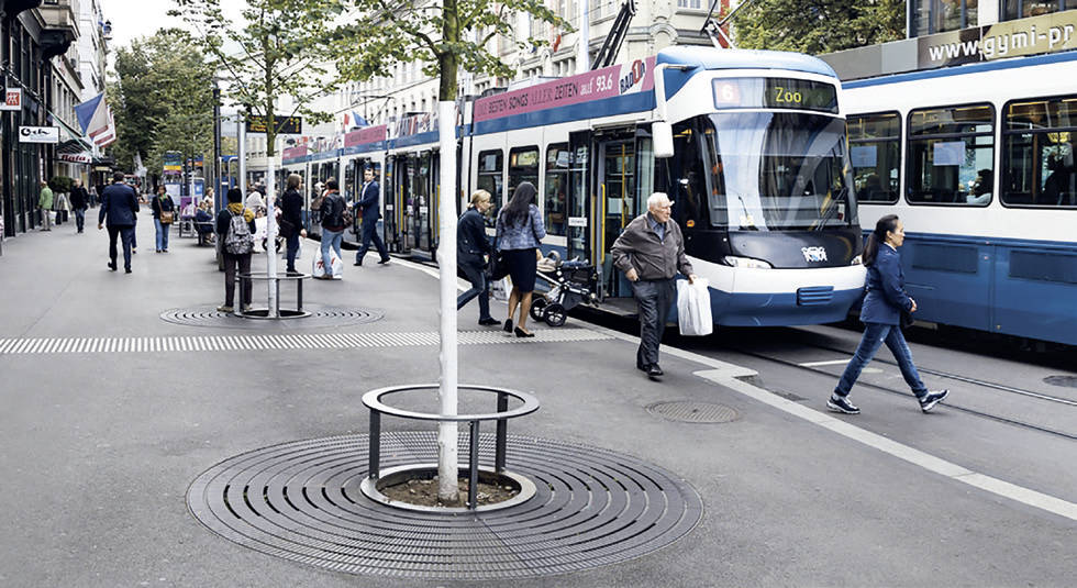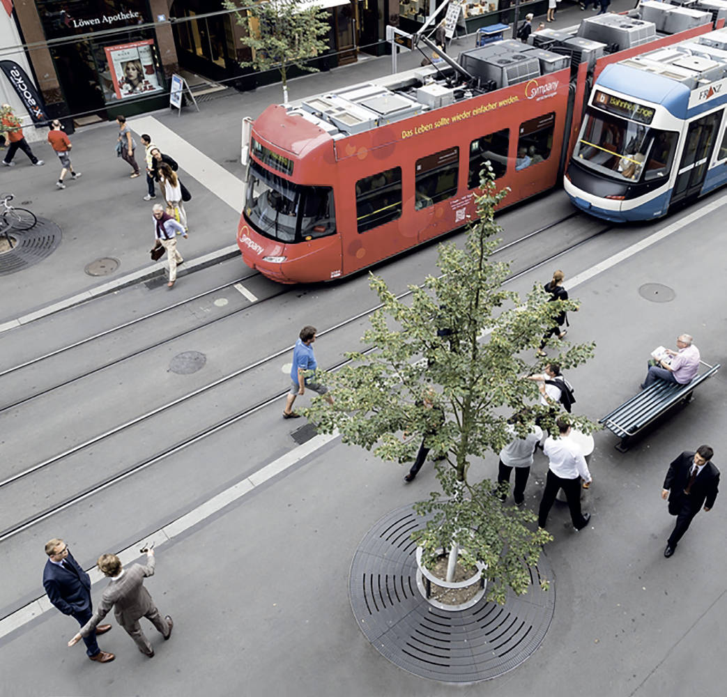 Die weltberühmte Zürcher Bahnhofstraße ist Flaniermeile und zentrale Verkehrsachse in einem. Im Zuge der Neugestaltung wurde zusammen mit der Stadt Zürich und unserem ortsansässigen Vertriebspartner ein spezieller Objektbaumrost entwickelt. Individuelle Anforderungen wie eine hohe Belastbarkeit, eine besondere Oberfläche und eine reduzierte Anzahl von Schlitzen wurden optimal umgesetzt. Über 120 Baumroste tragen heute zum eleganten Gesamtbild der neugestalteten Bahnhofstraße bei.